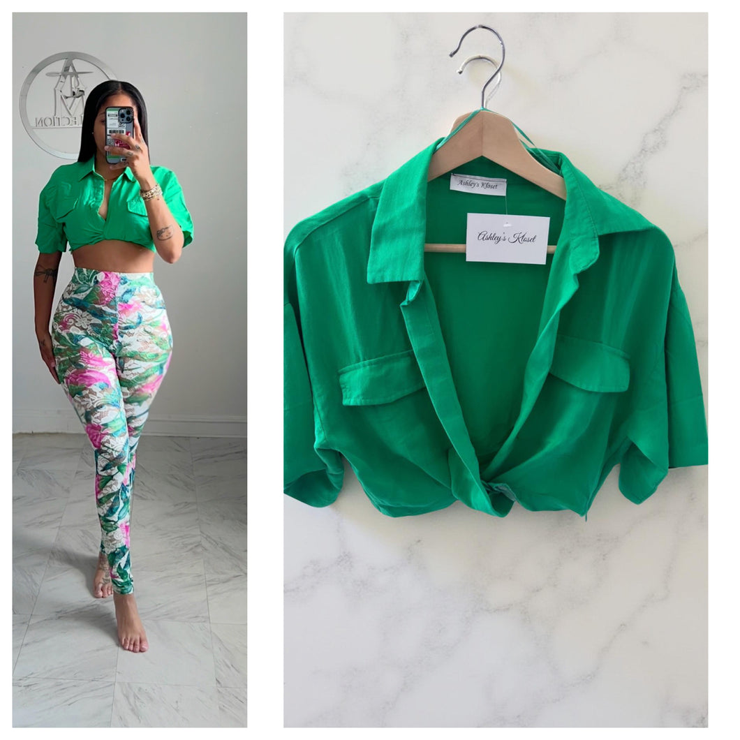 it’s made out of a light weight linen, cropped with a side zipper, it also has to front pockets.